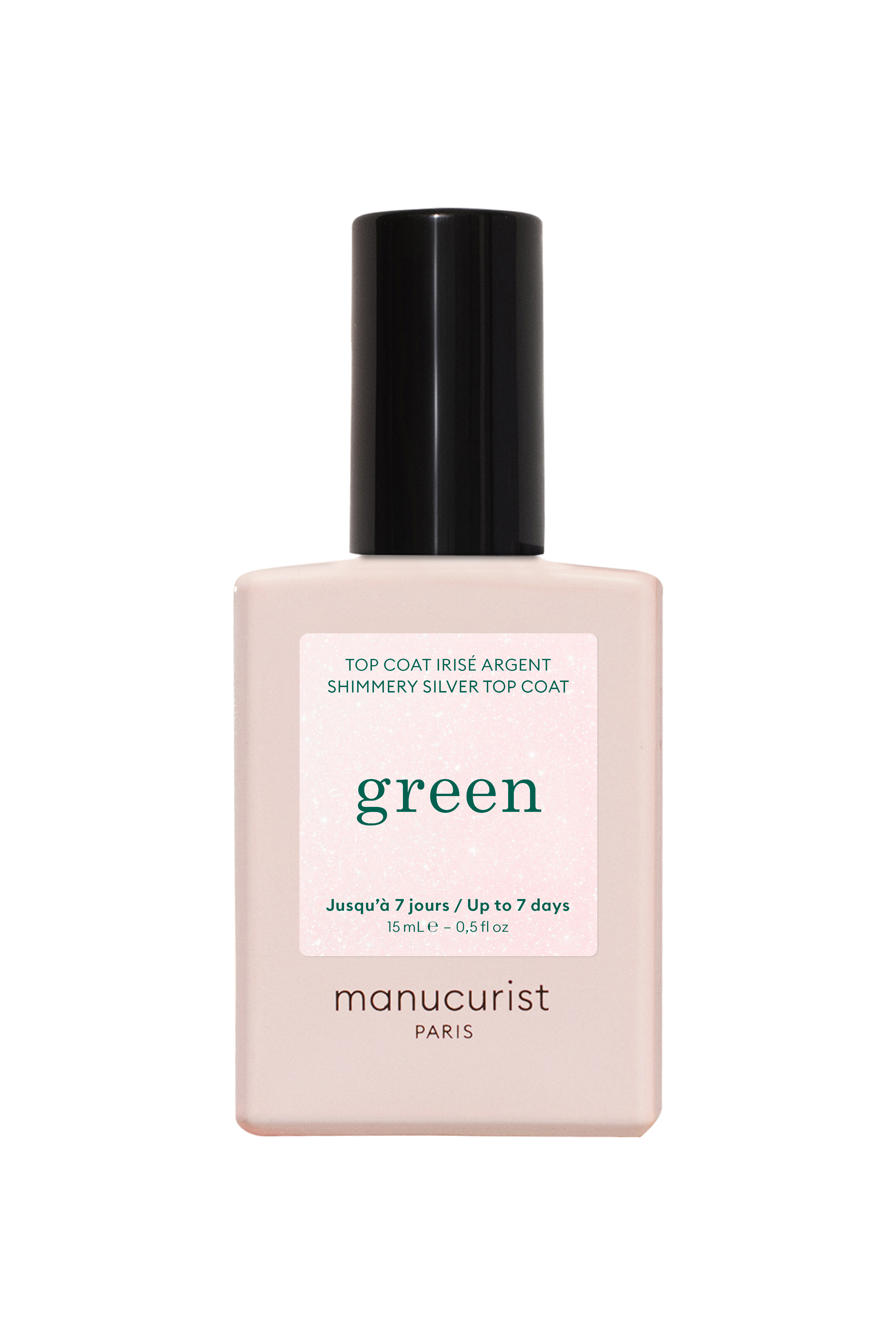 De Green Top Coat is voorzien van microglitters en verfraait elke manicure met een parelmoer, gouden of zilveren glans. Zelfde houdbaarheid, zelfde glans… maar met een extra sprankeling.